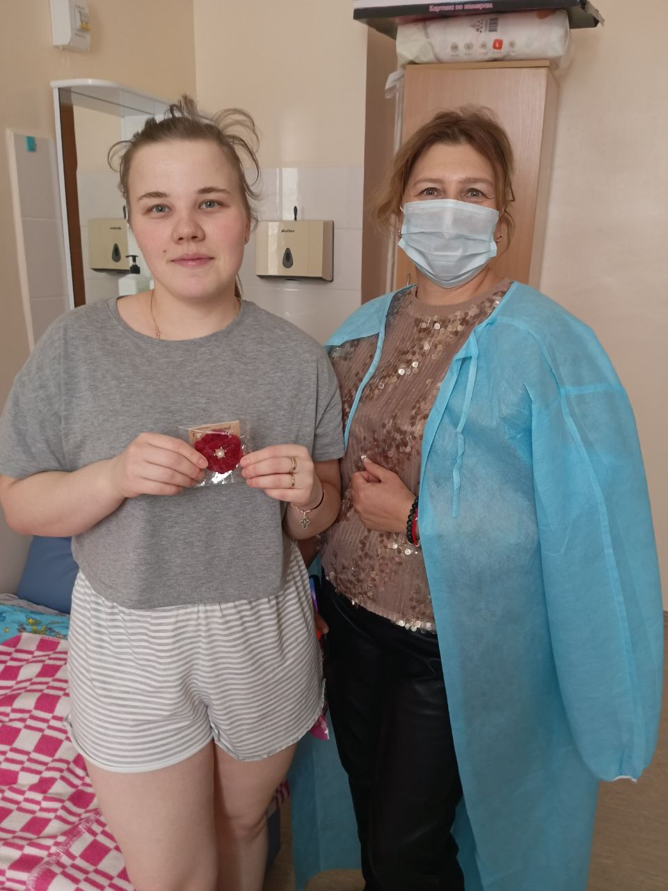 А еще руководитель этого замечательного проекта Наталья Шестакова поздравила мамочек наших пациентов с наступающим весенним праздником, и подарила подарки, хранящие тепло ручной работы. Чудесные украшения подняли всем настроение и наполнили сердца радостью.